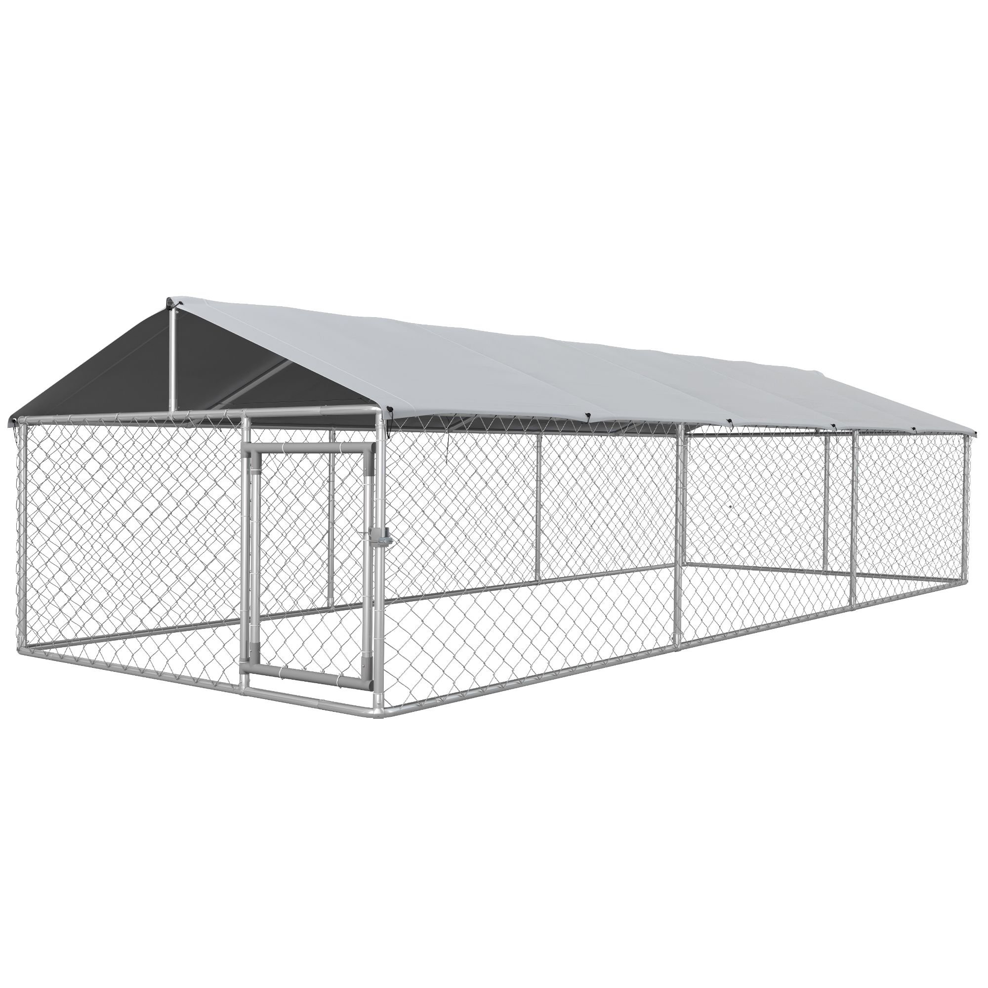 19.7' x 7.5' x 4.9' Dog Kennel Outdoor for Large-Sized Dogs with Waterproof UV Resistant Roof, Silver 19.7' x 7.5' x 4.9' Dog Kennel Outdoor for Large-Sized Dogs with Waterproof UV Resistant Roof, Silver 19.7' x 7.5' x 4.9' Dog Kennel Outdoor for Large-Sized Dogs with Waterproof UV Resistant Roof, Silver