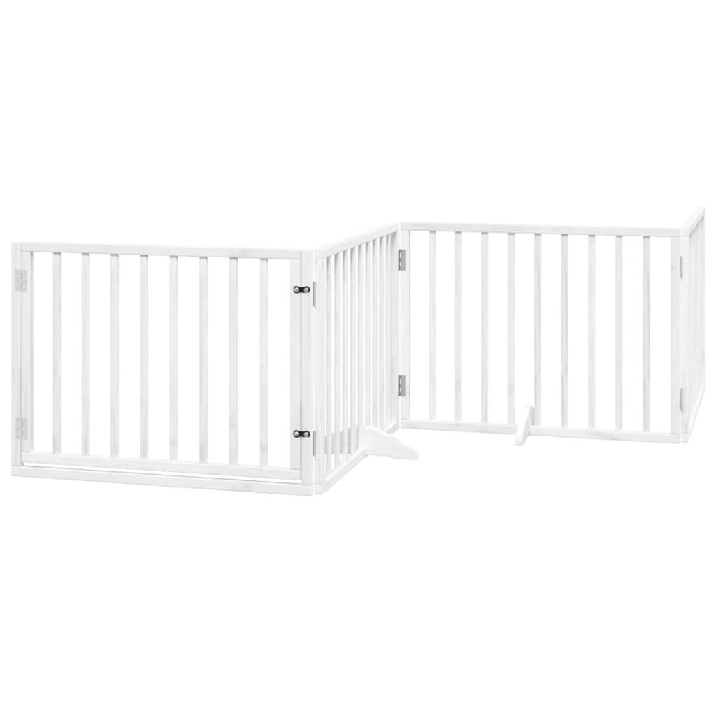 Dog Gate with Door Foldable 4 Panels White 126.0 " Poplar Wood