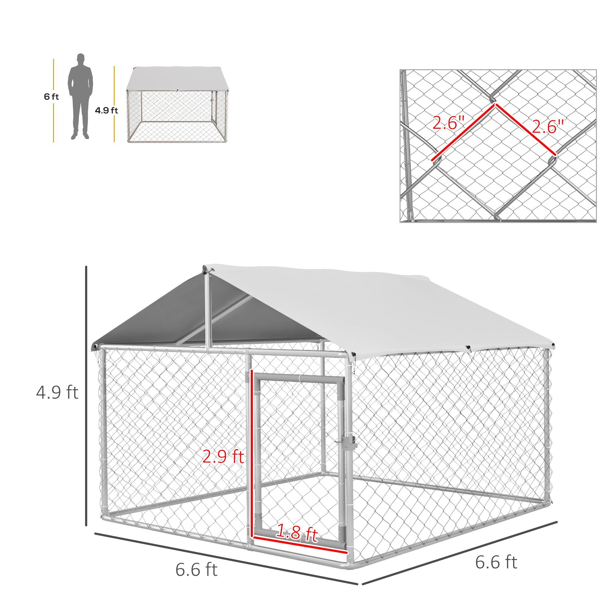 6.6' x 6.6' x 4.9' Dog Kennel Outdoor for Small Medium Dogs with Waterproof Roof, Silver 6.6' x 6.6' x 4.9' Dog Kennel Outdoor for Small Medium Dogs with Waterproof Roof, Silver 6.6' x 6.6' x 4.9' Dog Kennel Outdoor for Small Medium Dogs with Waterproof Roof, Silver