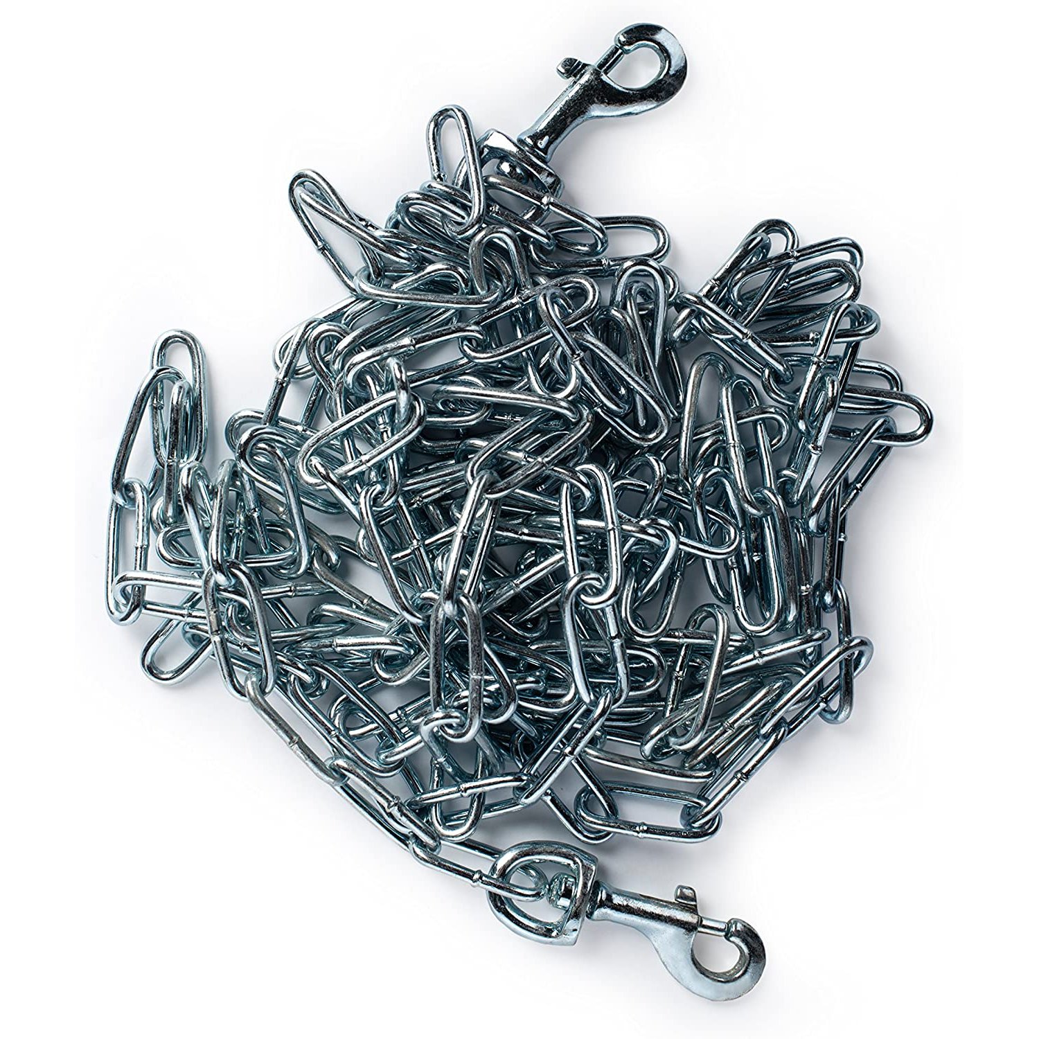 Prevue Pet Products medium-duty 15Æ tie-out chain 2114 is designed for dogs up to 55 lbs. Zinc plated welded oval links are strong, ensuring your dog stays safe and secure. Premium quality die-cast iron swivel bolt snaps at both ends connect easily and prevent tangling. Medium duty tie out chain is 15 foot long and 2.5 mm in diameter.